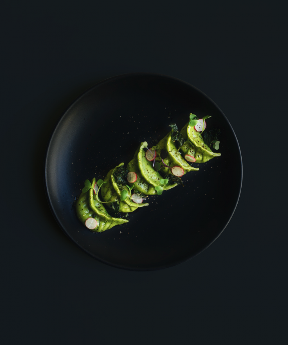 I wanted this dumpling to be October in your mouth (I know it's August lol) with hints of sage and thyme. The sweetness of the squash is balanced out with a basil pesto and toasted kale chips.