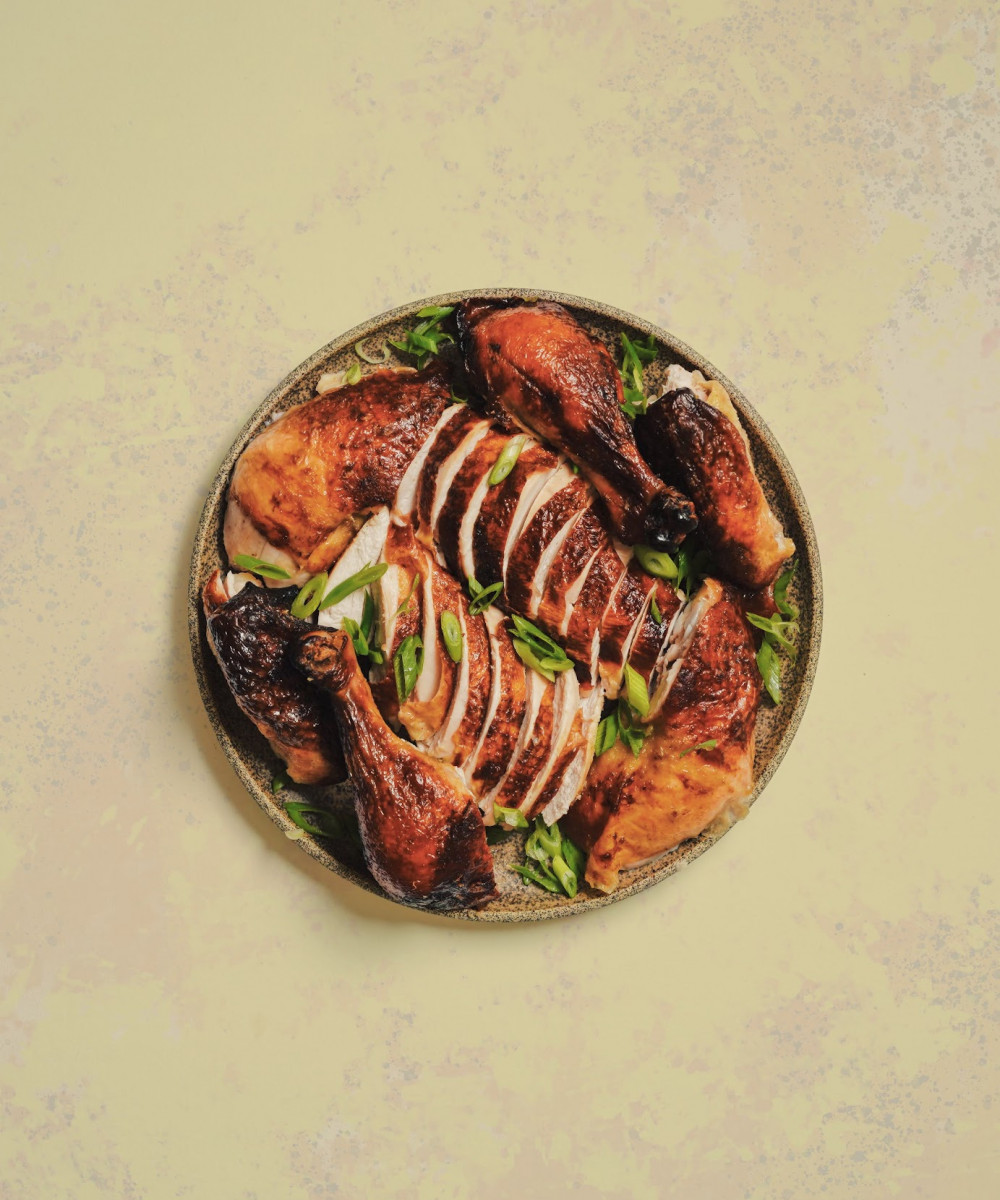 An homage to watching Ina Garten with my grandma. This juicy, whole roasted chicken is soaked in the nostalgic flavors of scallion, ginger, and childhood.