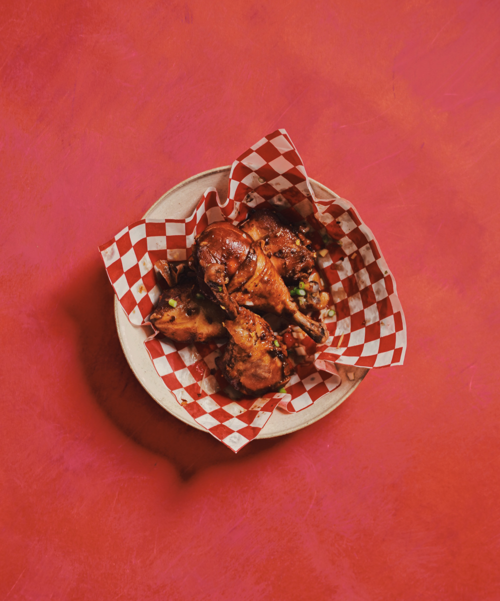 Tender fall off the bone chicken drumsticks slow braised in Coca-Cola, soy sauce, black vinegar, and fish sauce.