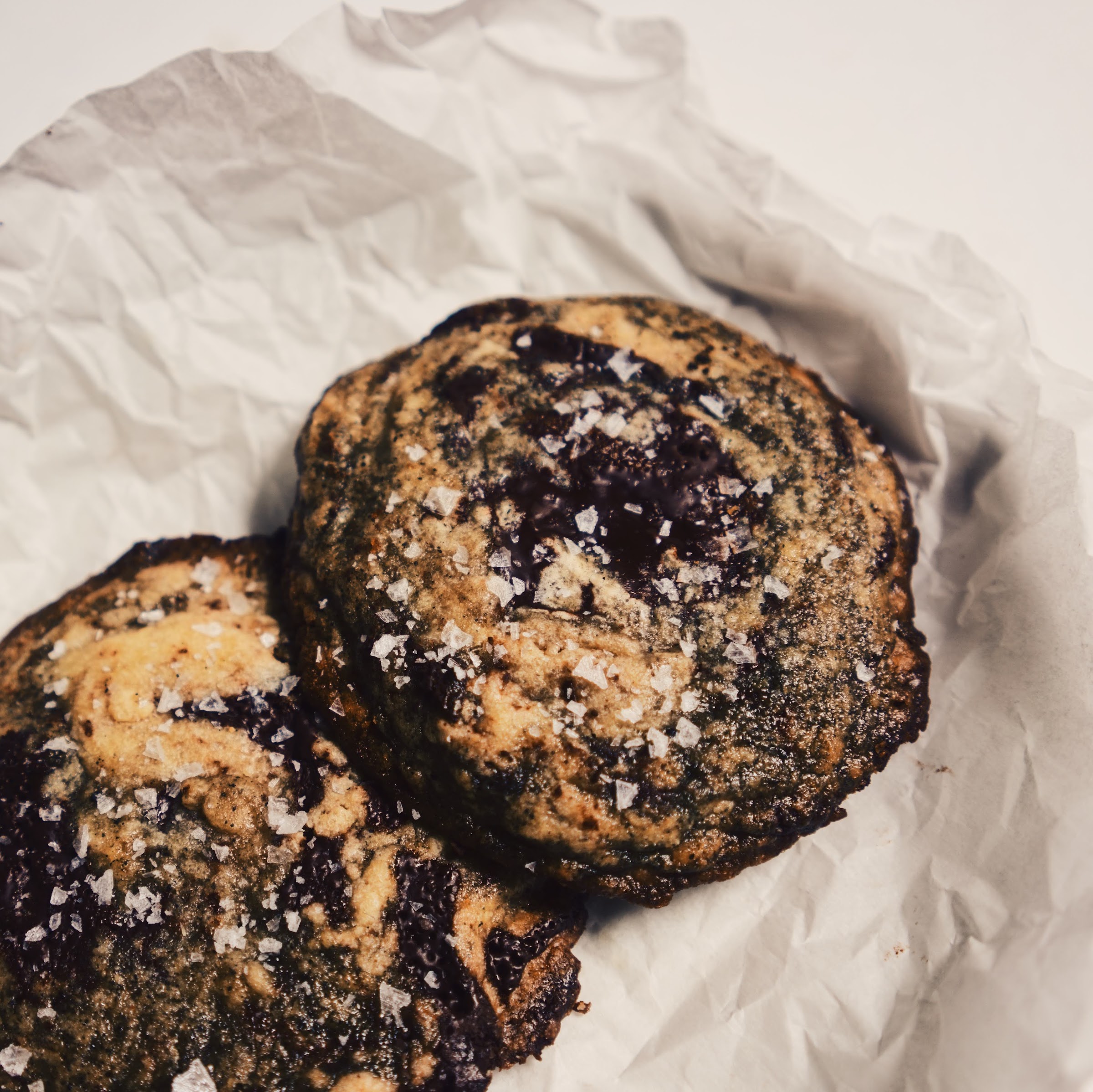 Made this impromptu cookie recipe as a way to destress from the election and eat my feelings. I made this more for myself and wasn't planning on publishing before perfecting it but it has been much requested so think of this as an open source recipe. This cookie mixes my favorite flavors from desserts like black sesame 湯圓 (glutinous rice balls filled with black sesame filling) into the form of a chocolate chip cookie. A comforting combination of bitter chocolate, sweet cookie batter, and nutty black sesame salted caramel that is perfect with a little bit of sprinkled sea salt and paired with a glass of milk.