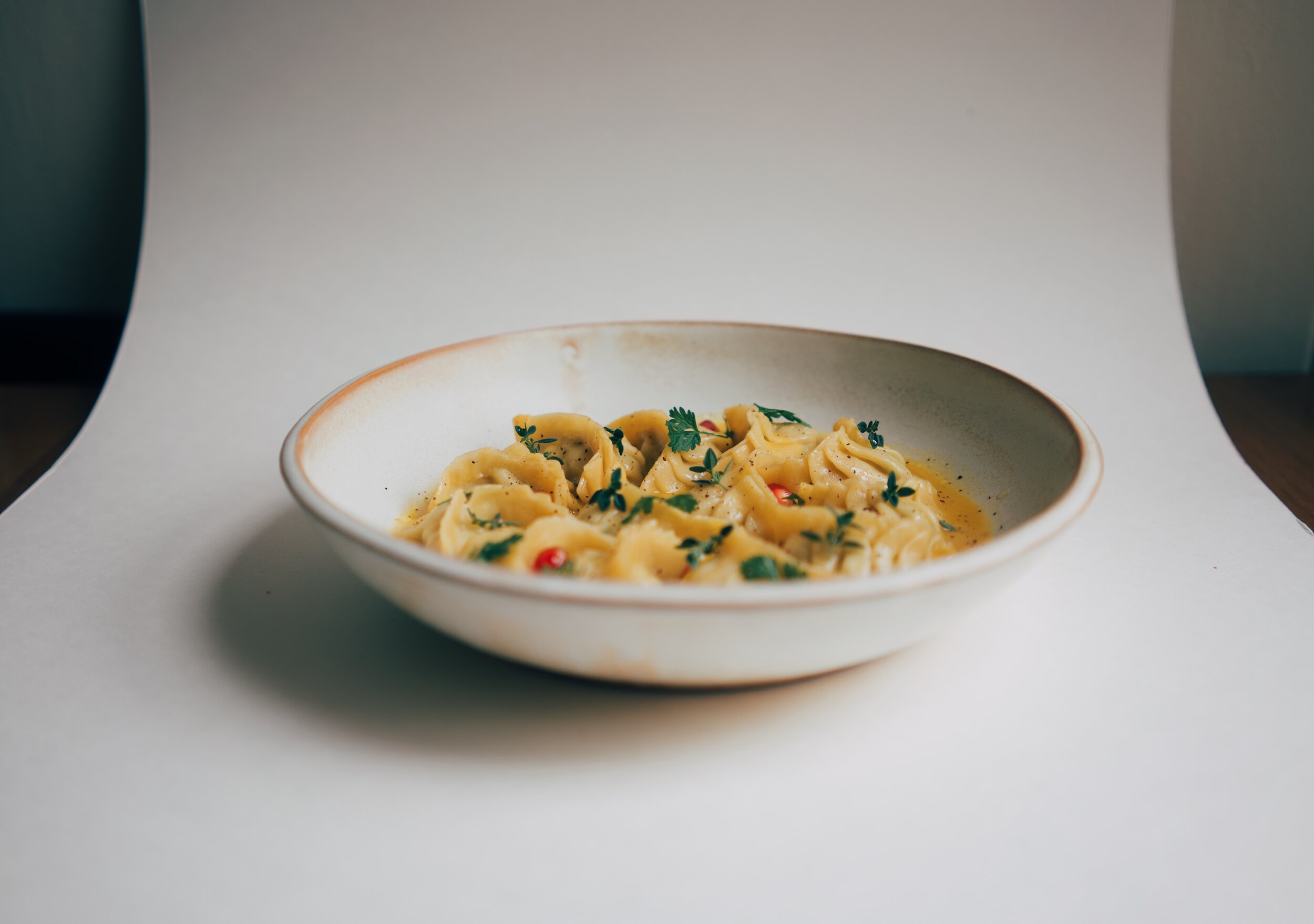 A dumpling dish with a filling made with pork, veal, and parsley. They're then steamed directly in a comforting pomodoro sauce that's made in the steamer, a love letter to both Italian and Taiwanese tradition.