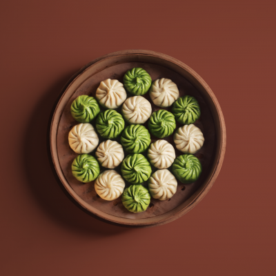 A vegetarian fall dumplings filled with roasted oyster mushrooms and butternut squash and seasoned with soy, sesame oil, and fresh scallions.