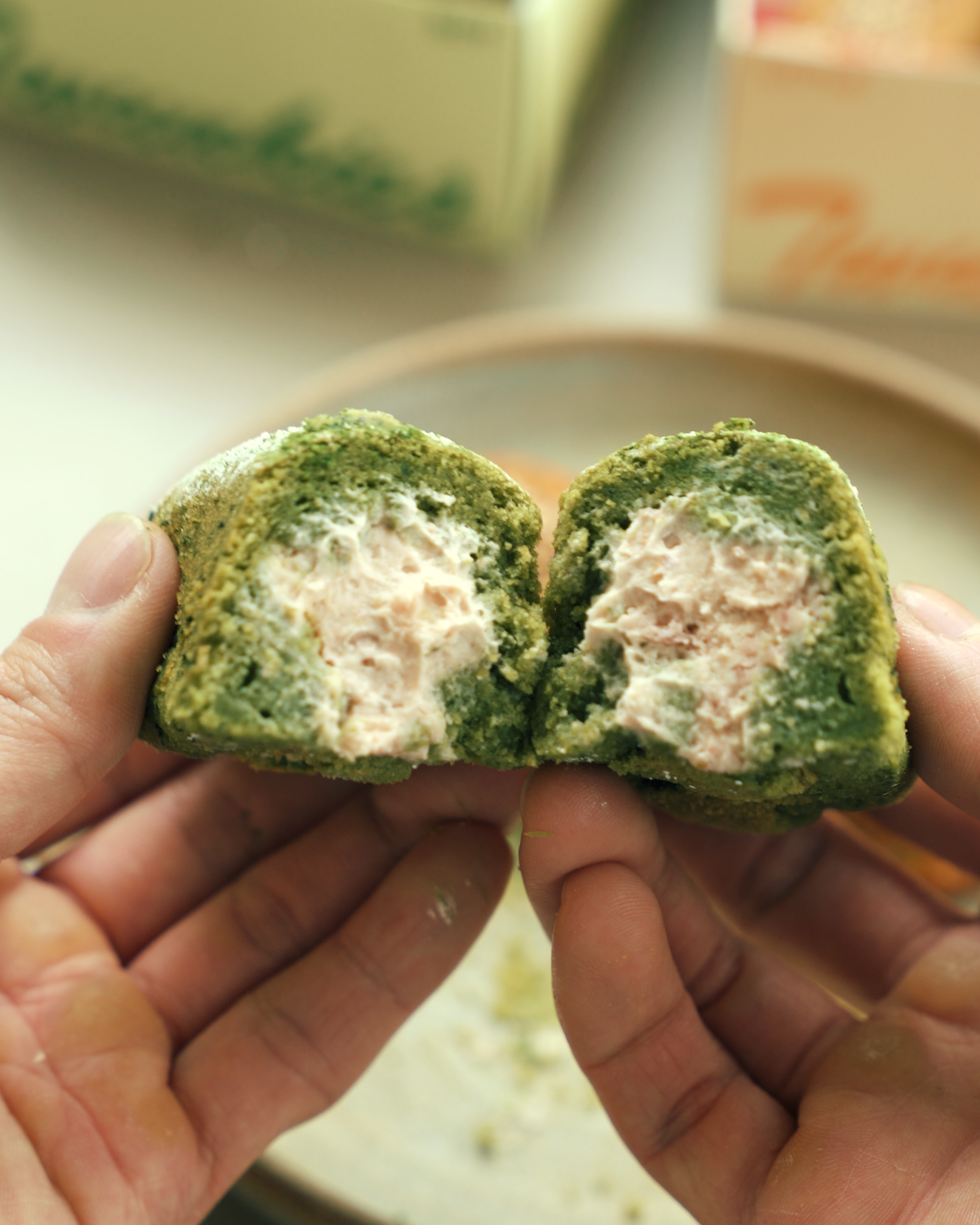 A playful take on the classic, iconic Twinkie that I'm calling the "Twunkie" :) A oolong flavored mochi cake filled with a mascarpone vanilla cream.