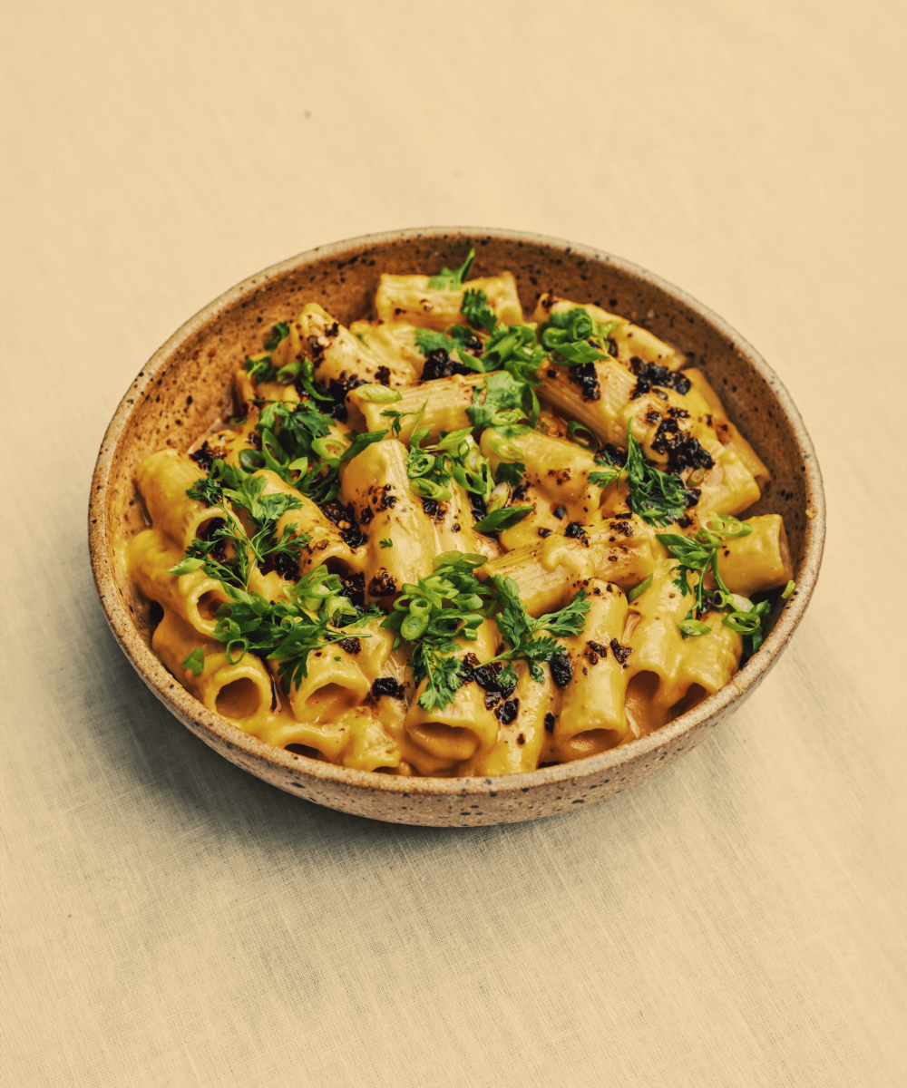Sweet corn is blended with onion and mixed with cheddar/parmesan to create a sweet and savory summer pasta.