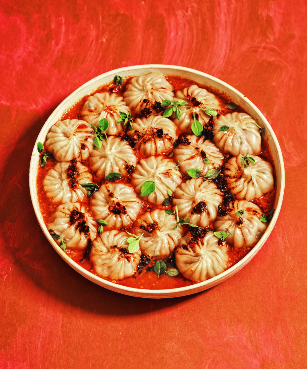 A dumpling dish with a filling made with pork, veal, and parsley. They're then steamed directly in a comforting pomodoro sauce that's made in the steamer, a love letter to both Italian and Taiwanese tradition.