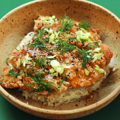 An extra large fried chicken cutlet doused in a sweet and sour glaze inspired by Taiwanese night markets.