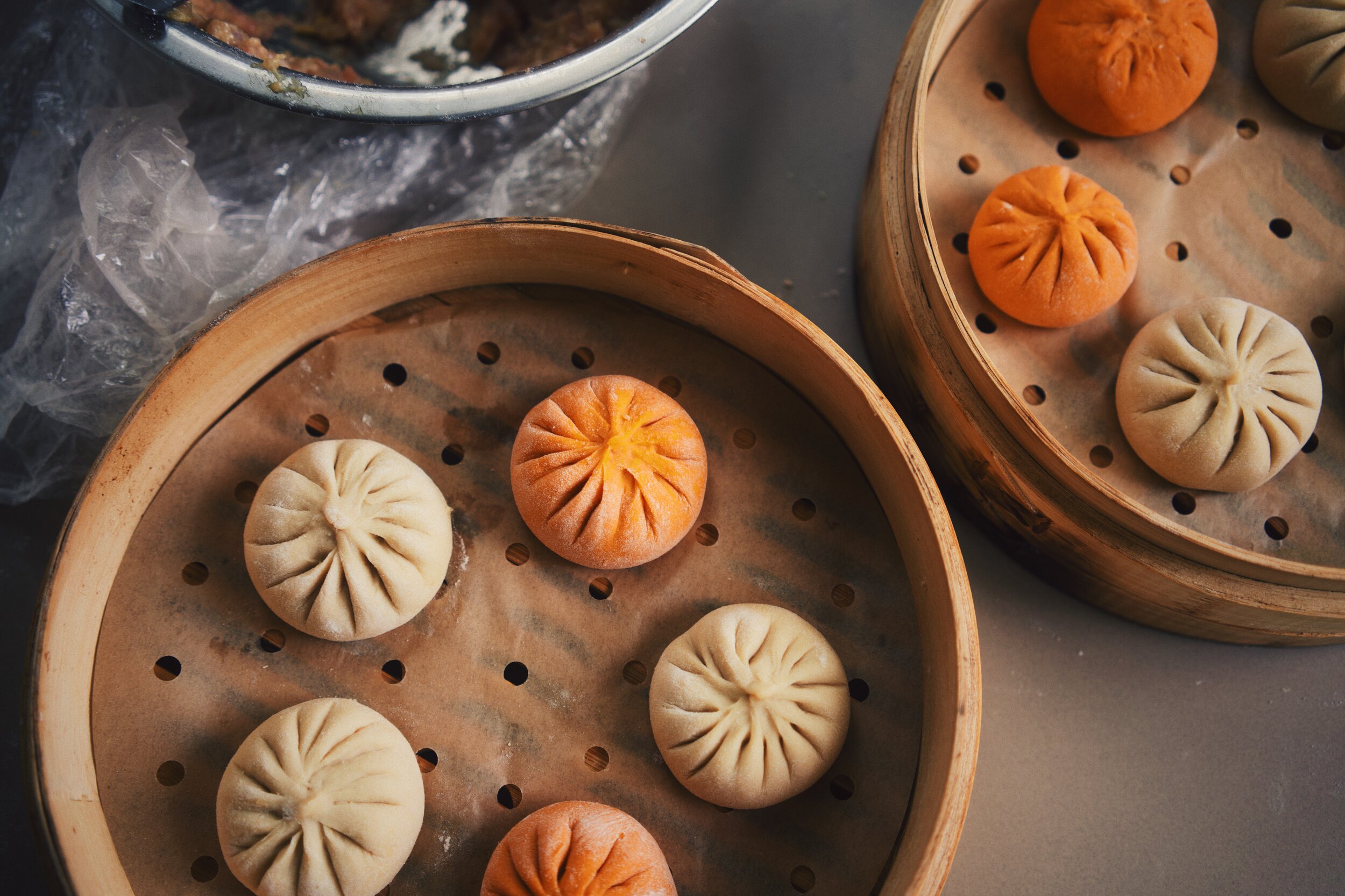 A dumpling dish with a filling made with pork, veal, and parsley. They're then steamed directly in a comforting pomodoro sauce that's made in the steamer, a love letter to both Italian and Taiwanese tradition.