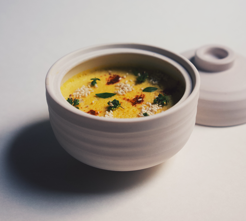 A custardy steamed egg infused with a roasted corn broth throughout, topped with fresh herbs and seasonings. A test kitchen recipe after we got some super sweet corn from our local CSA in Washington. For the record, I love corn, and unabashedly would make every recipe with corn if I could (I grew up in Ohio after all). While taking out the trash in the Seattle rain, I was craving summer and wondered if it was possible to embed the sweetness and distinct summer flavors of corn into the texture of a steamed egg and wanted to share the results with you all!. PS This bowl was like perfect for steamed egg and made by the super talented @christianpalino.