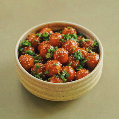 Sweet Potato Mochi Balls with Gochujang Butter Sauce
