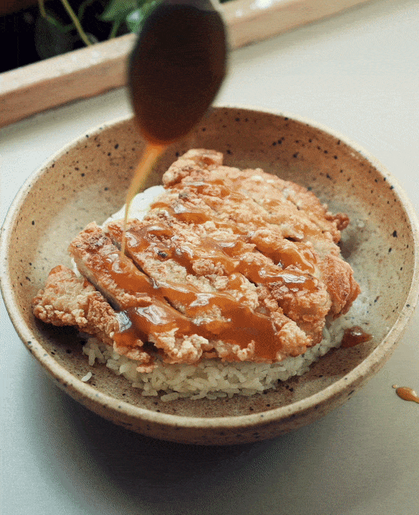 Imagine, it's 10 PM. You've already devoured an entire bowl of fragrant beef noodle soup and are currently digesting the bag of steamed buns that when combined in volume are the size of a small child. And yet, you find yourself drawn to the flickering of neon lights, tall wisps of smoke, the crackle of fried oil, the comforting glow of golden light. It's like you're in heaven, except heaven is the fried chicken stand with a bright gold sign serving a slab of the crispiest slab fried chicken breast in a Taipei night market. You have never seen a chicken breast this big. Hell, you've never seen a breast period! Before your mind can wander too much, you overhear that the chicken breast is butterflied, unfolded like a book, and tenderized with the back of a butcher knife. It's an ingenius technique that you realize allows the chicken breast to go from a lousy twin to a luxurious California King. Its maximum surface area made to invite all its friends like soy sauce and garlic to stay overnight before being battered and fried the next day for you to experience pure chicken bliss. In this recreation of the night market classic fried chicken cutlet, enjoy as is or doused in a sweet and sour sauce in the form of orange honey and miso glaze on top of rice and fresh herbs.